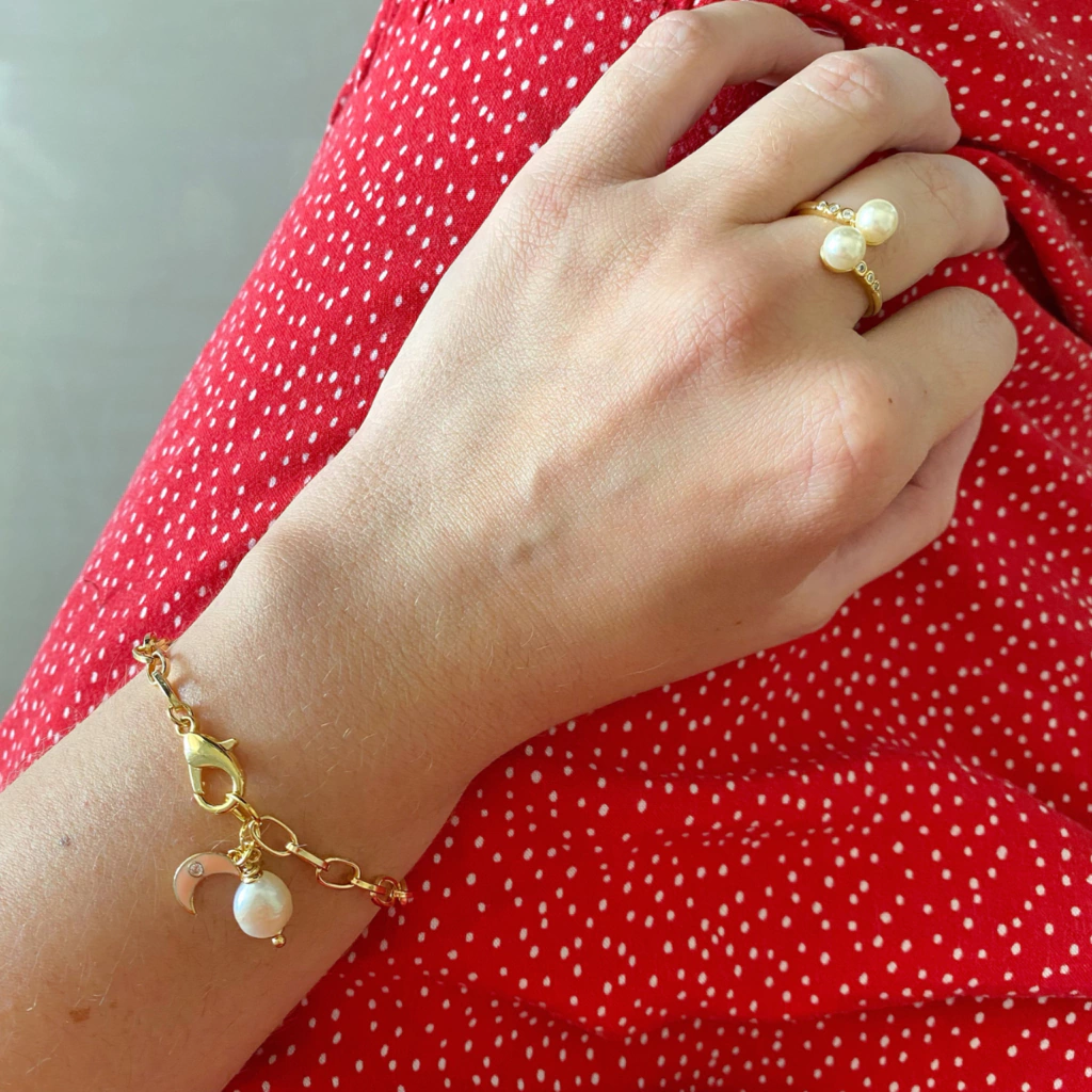 Anel ajustável de pérolas banho ouro